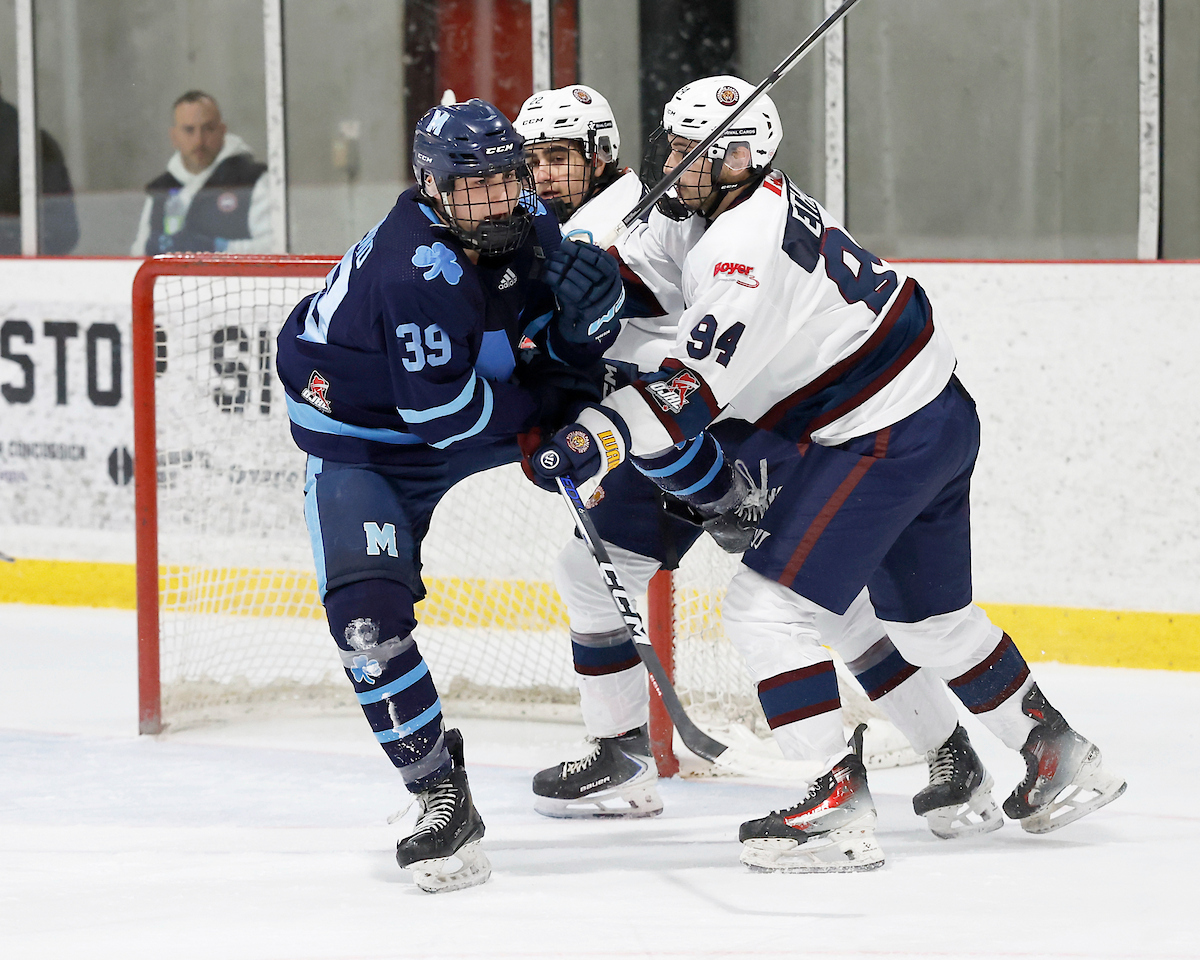 St. Michael’s answered with a power-play goal later in the period to send the teams into the second intermission tied 1-1. The Buzzers capitalized on a Pickering miscue at the blue line early in the third to take a 2-1 lead, but Michael Lavigne responded just over a minute later with his first OJHL goal to knot the game once again.